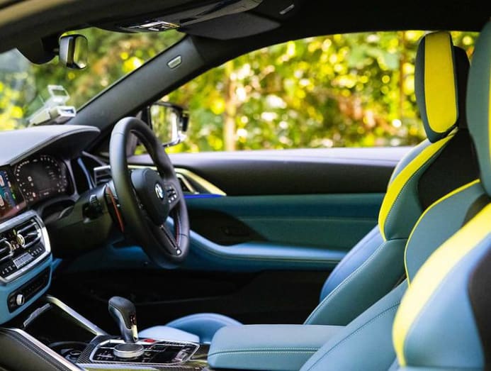Just equally thrilling is the M3 and M4's flashy interior, starting with newly-developed, electrically adjustable Thou Sport seats in fine-grain Merino full leather trim every bit standard, with seat ventilation bachelor for the beginning time. More exciting Grand Carbon bucket seats make their debut here, every bit an optional addition. Meanwhile, tri-coloured M stitching on seat belts make for a simple detail that invokes the pure joy of belonging to a very exclusive club of M enthusiasts.